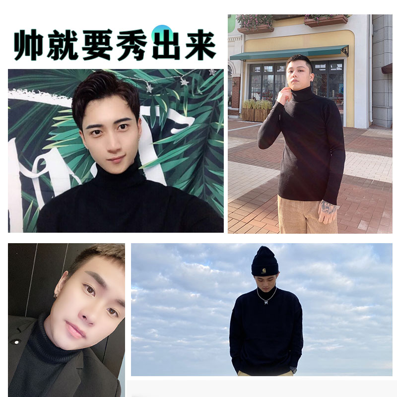 Black sweater male Korean version High collar uptrend men's inner hitch undershirt tide autumn and winter new individuality needle weaters
