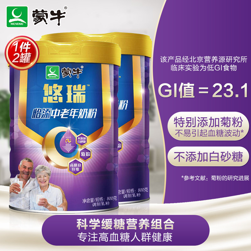 Mengniu flagship store You Ruiyitian middle-aged and elderly milk powder 800g * 2 cans of low GI slow blood sugar containing inulin and high calcium