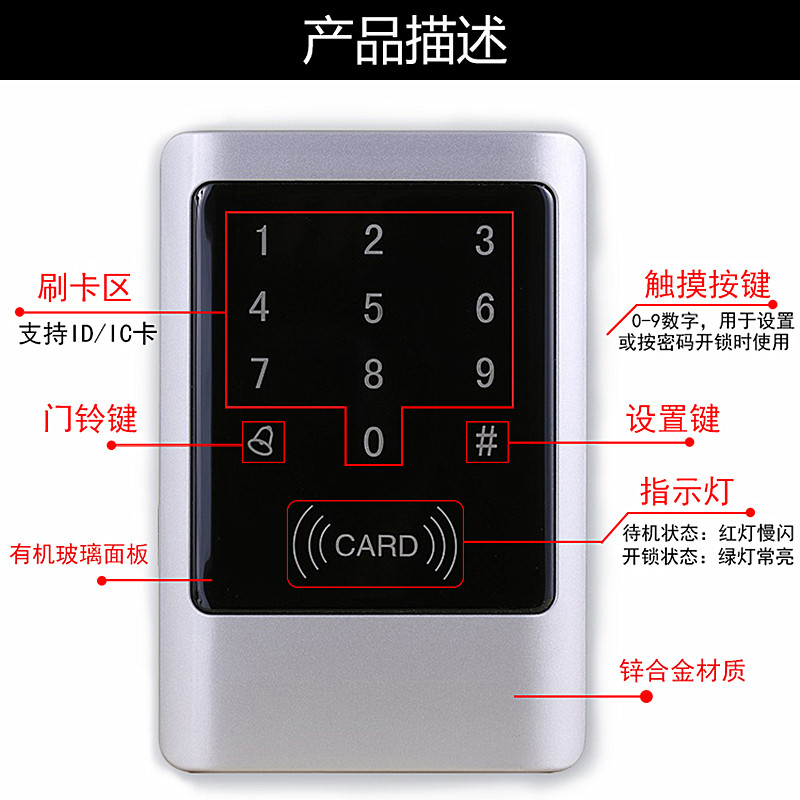 Metal outdoor waterproof access control system All touch code lock fence machine controller ID swipe reader set