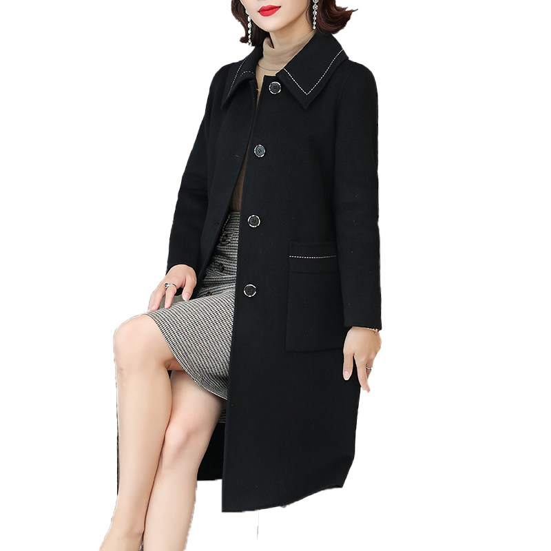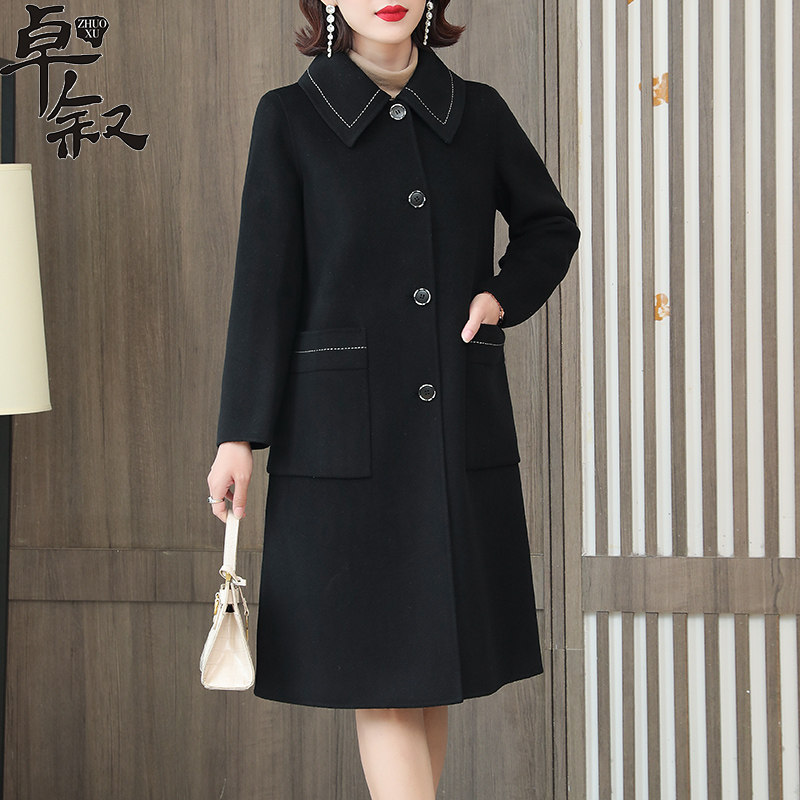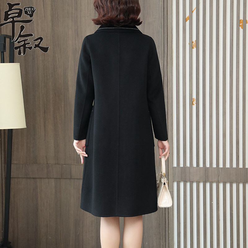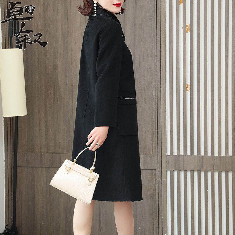 Decode Clear Black Costume Lady with Long Double-sided Golden Cashmere New Fall and Winter High-end Coat