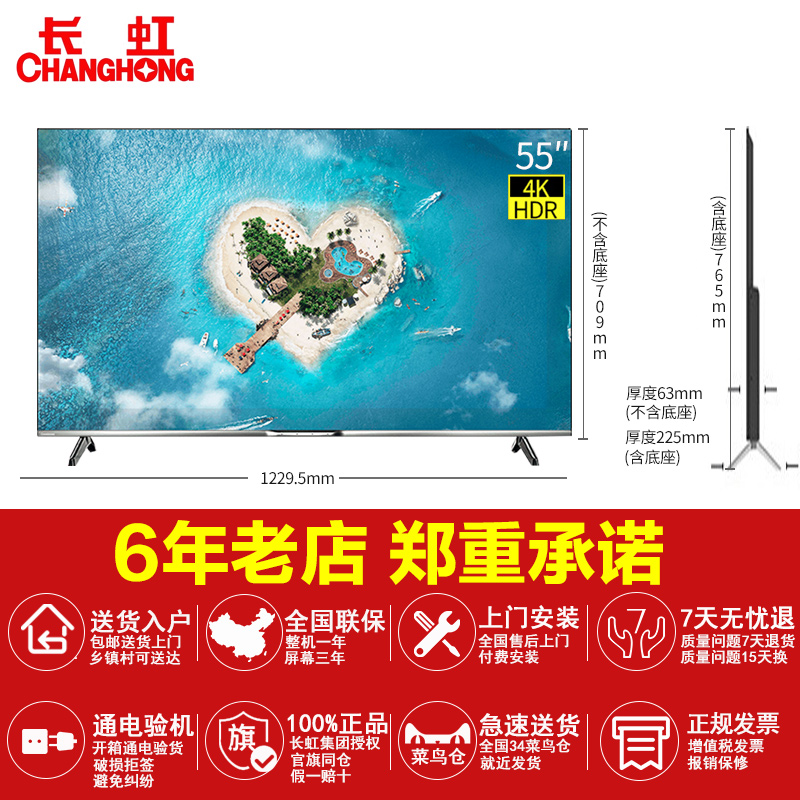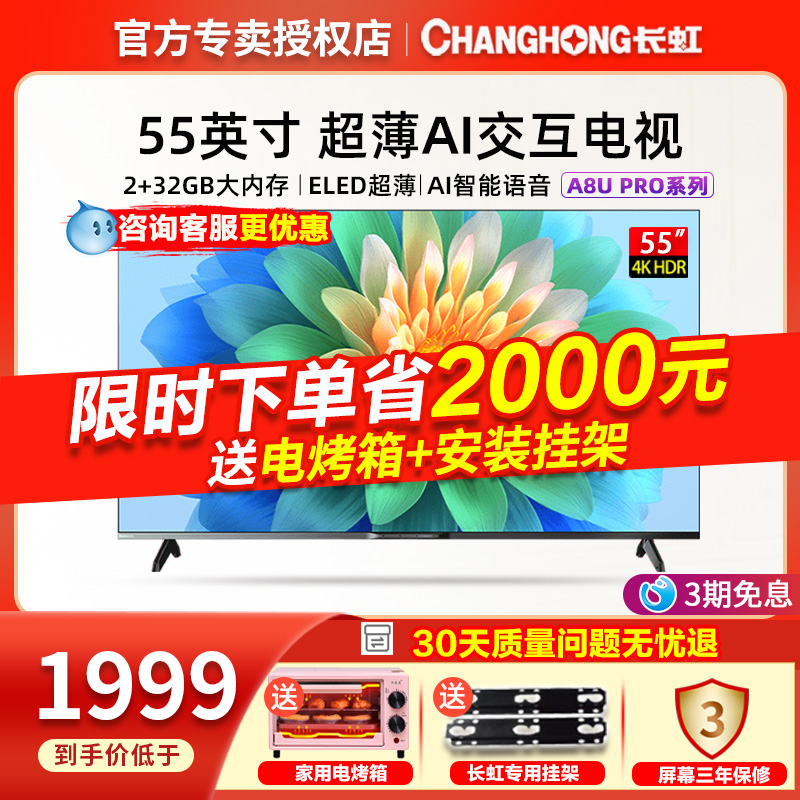 Changhong 55A8U pro 55-inch 4K ultra-clear intelligent voice smart IoT home flat LCD TV 65