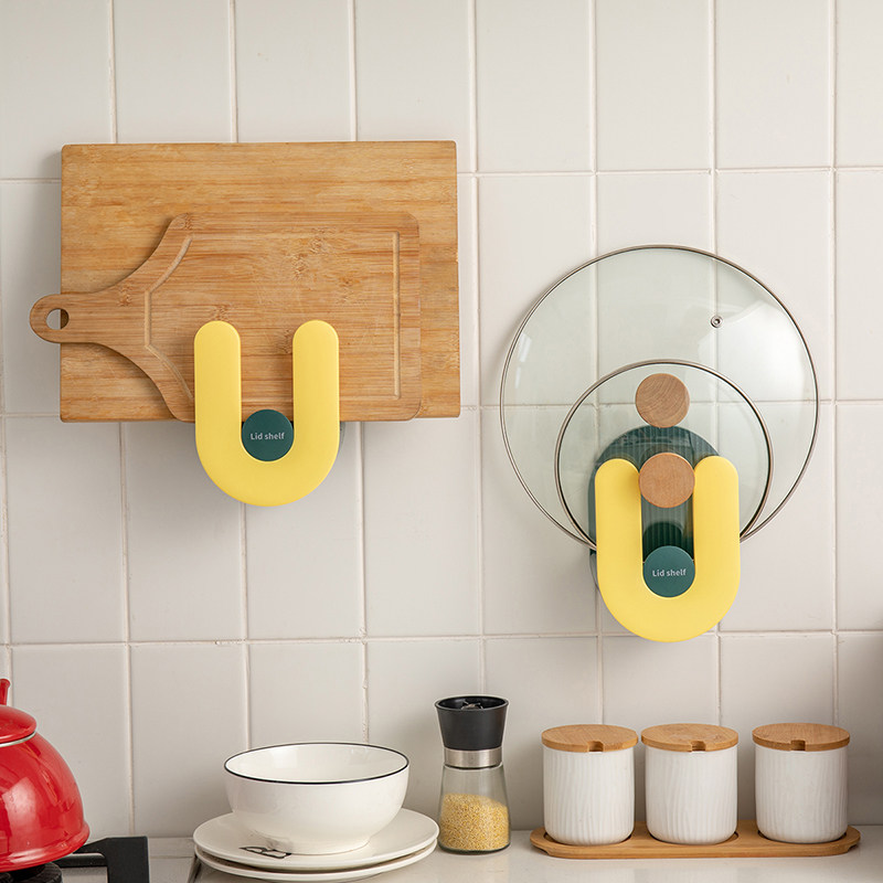 Pot lid rack wall hanging type non-punching drainage kitchen put pot lid artifact shelf cutting board cutting board storage shelf