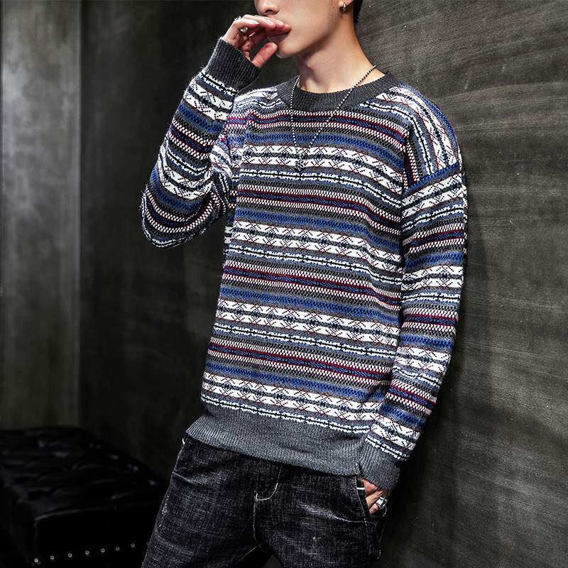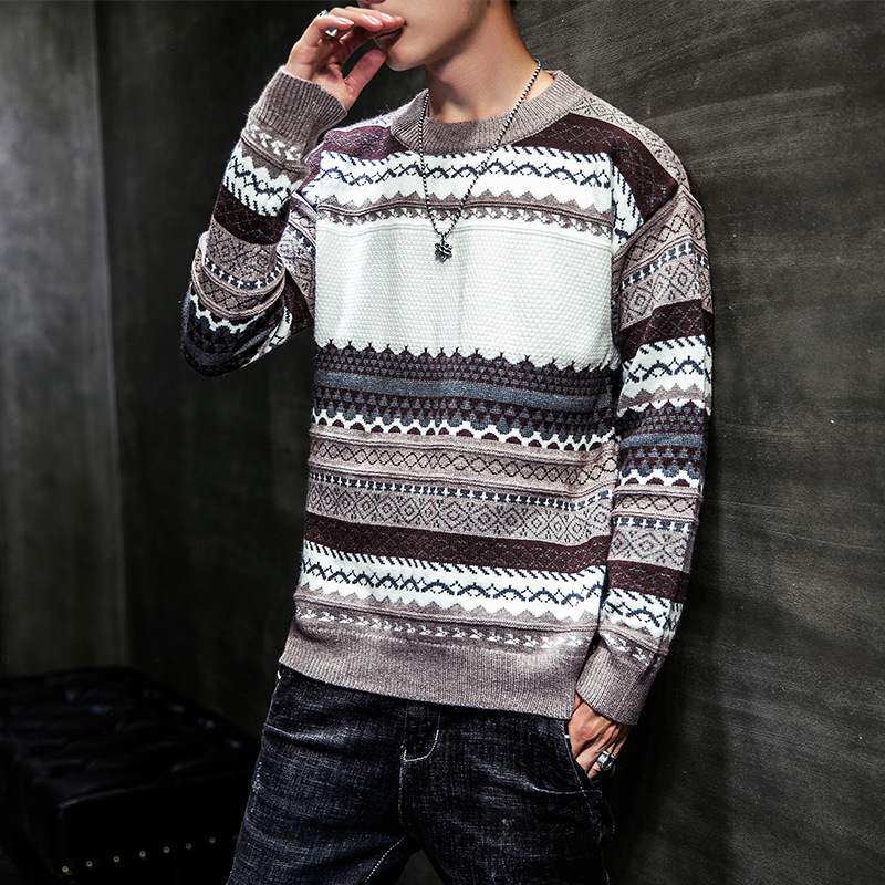 Fall Tide Men's Round-collar Sweater Fashion Young Men's Clothes Han-Edition Knitted Sweater