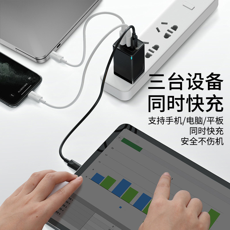 Beth 65W Gallium Nitride Charger is suitable for iPhone13 fast charging GaN charging head 3rd generation pro dual Typec + USB multi-port Apple pd notebook macbook computer iPad mobile phone