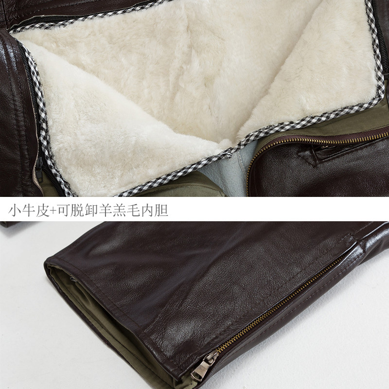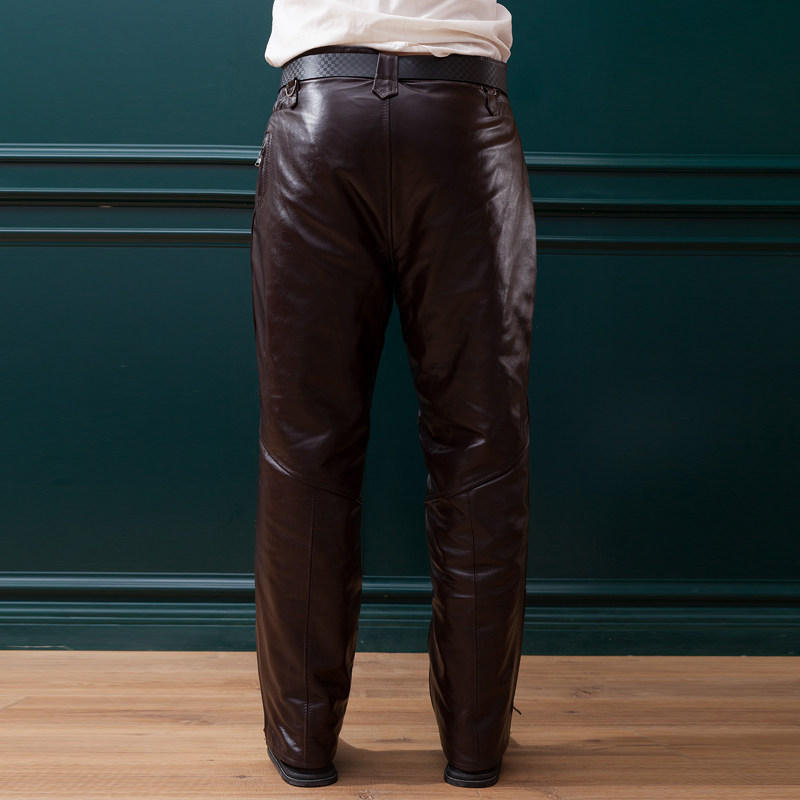 Leather Leather Pants Men's Glint Thickened Riding Warm High Waist Leather Hair Integrated Pants Man Bull Leather Loose Wool Cotton Pants