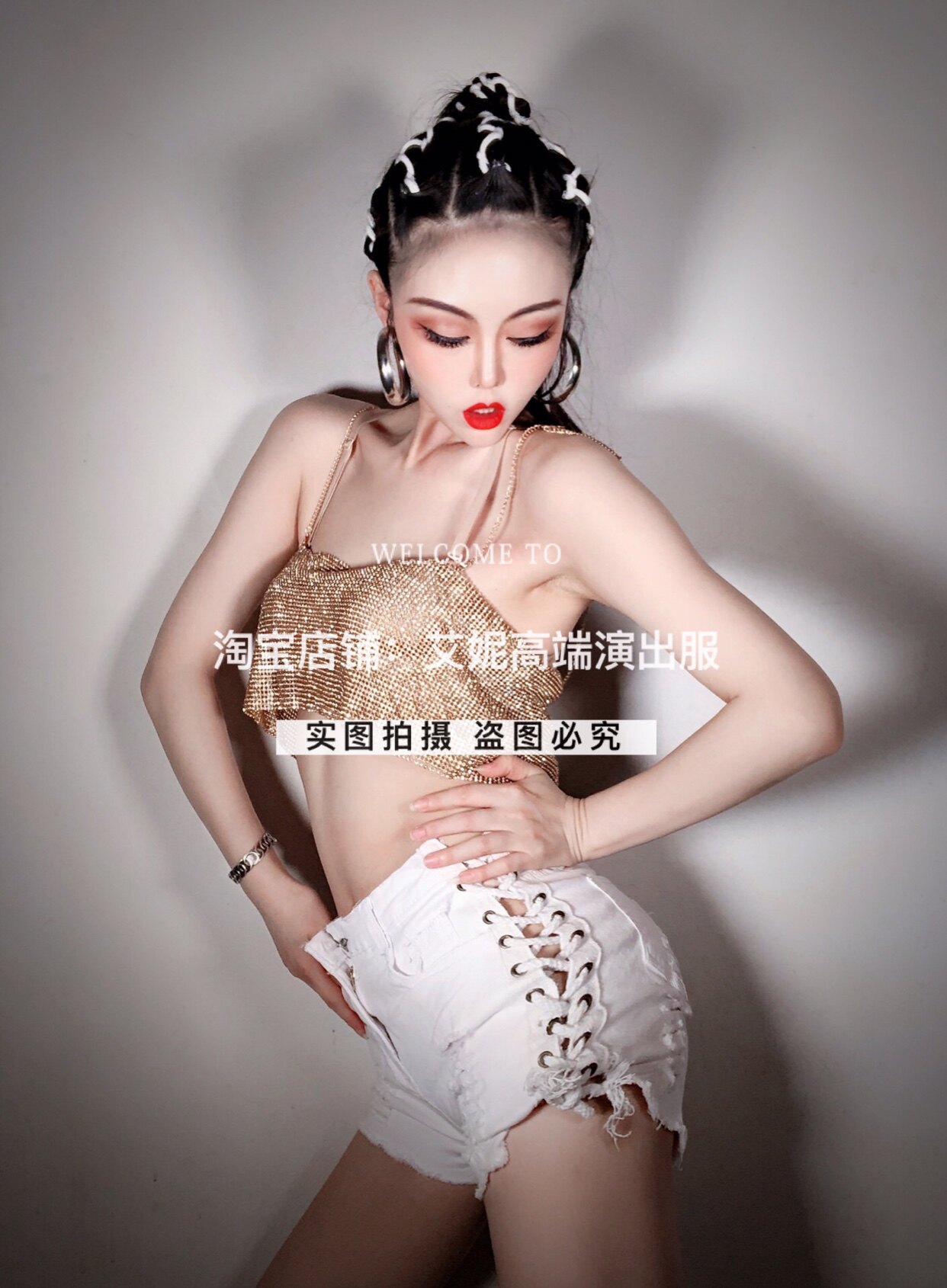 TT high-end nightclub bar singer djds dance team gogo sexy full drill top shorts two-piece suit