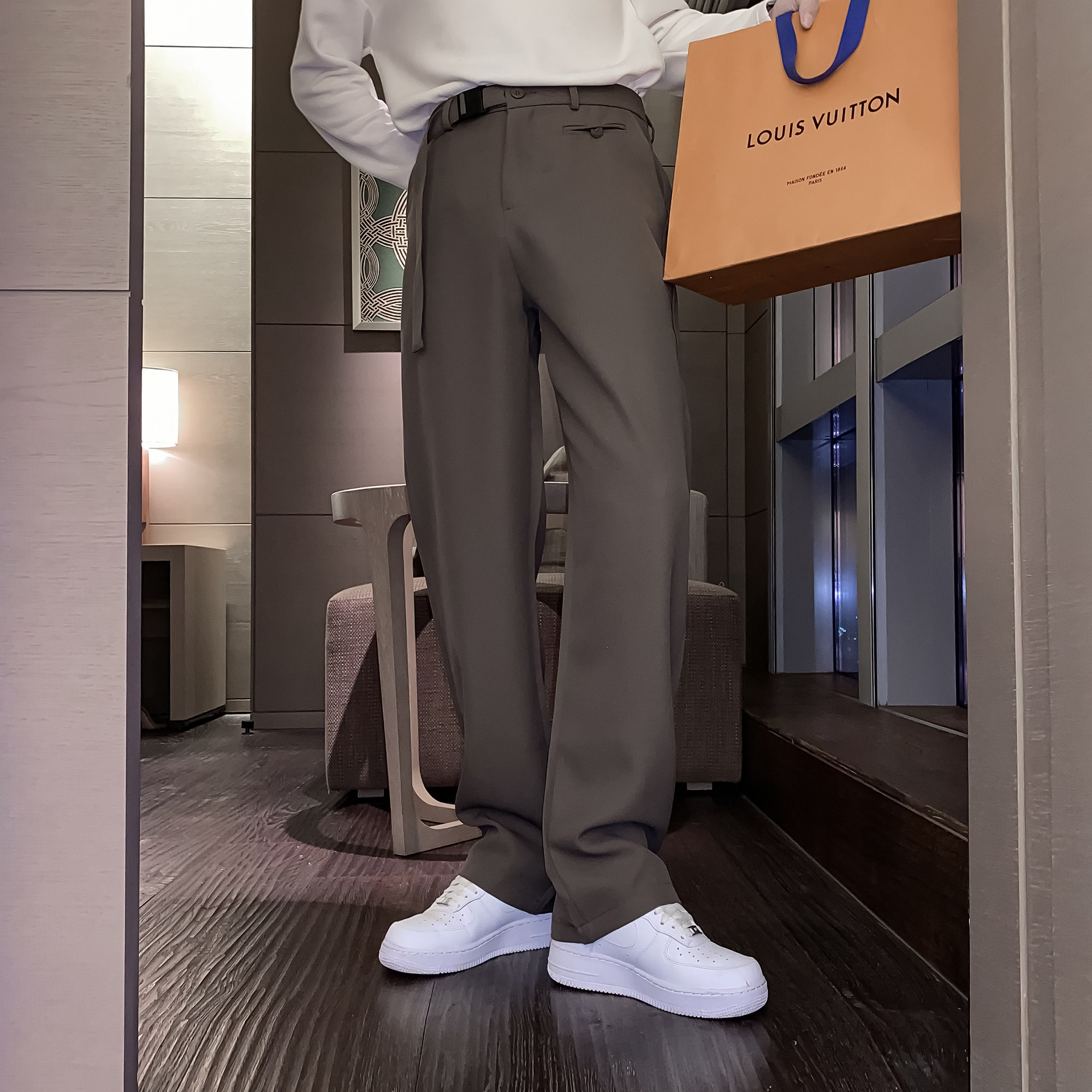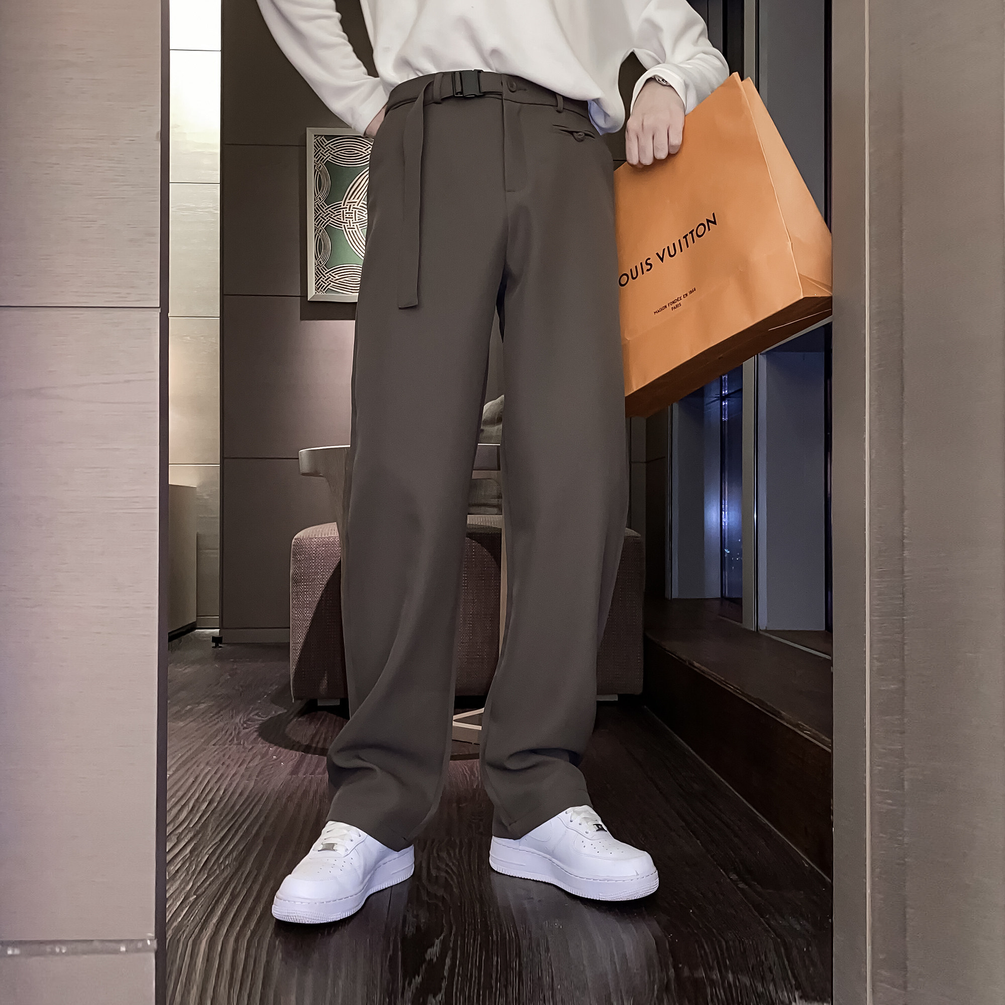 (VERA MENS)South Korea ins casual functional handsome loose straight tube hanging wide leg long trousers trend men