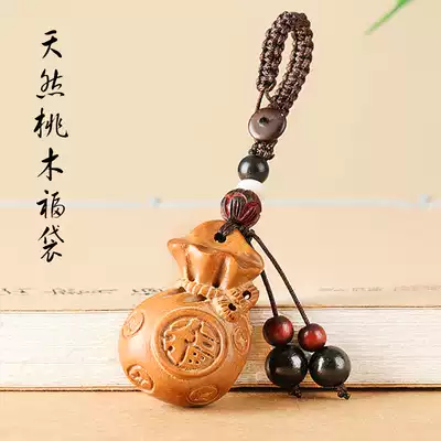 Natural mahogany bag money bag car key chain ring Zhaicai safe pendant hanging jewelry creative men and women chain rope