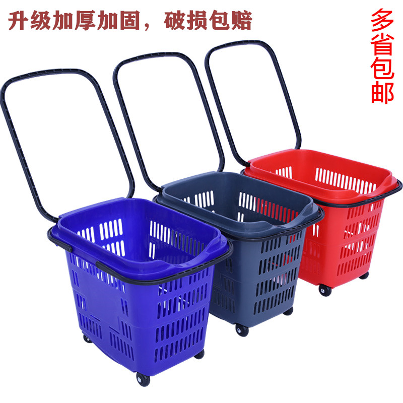 Supermarket Thickening of Enlarged Plastic High Back Pull Rod Shopping Basket Convenience Store Carry-on Basket Shopping Frame Buy Vegetable Basket With Wheel Basket