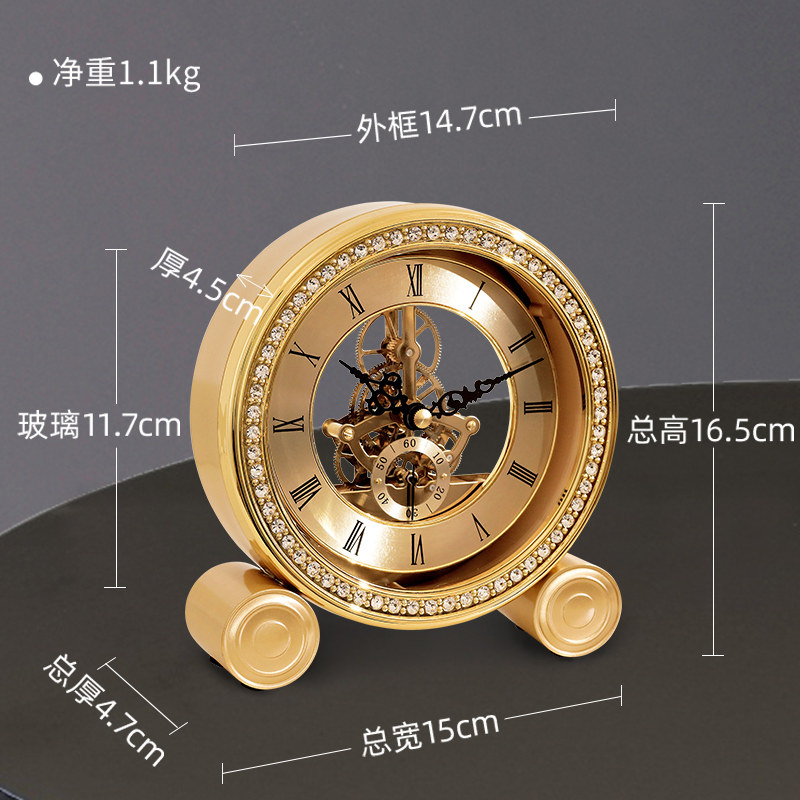 Eurostyle pure brass seat clock modern living room home sitting clock Xuanguan desktop and watch light extravagant modern fashion swing piece