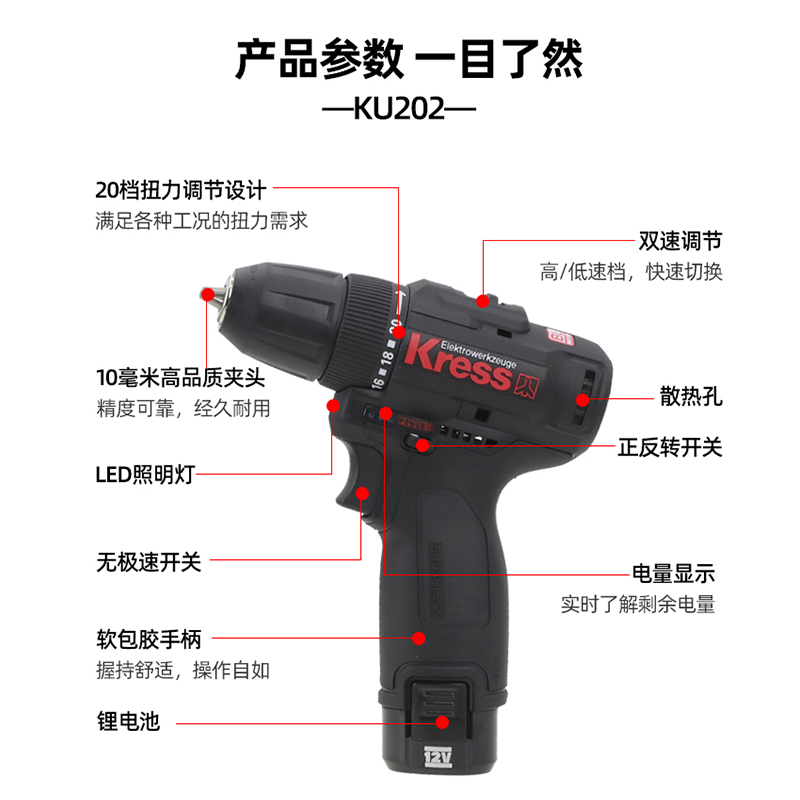 Card Winning Rechargeable Brushless Electric Drill Home Multifunction Small 12V Electric Screw Driver KU202 Industrial Class