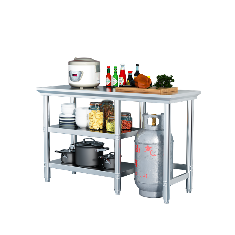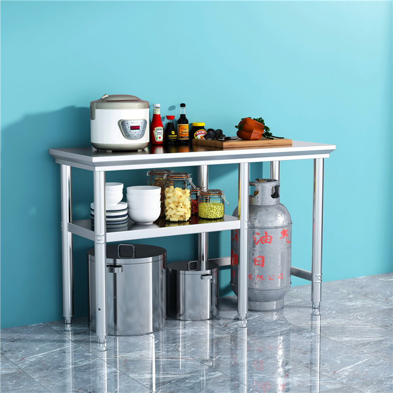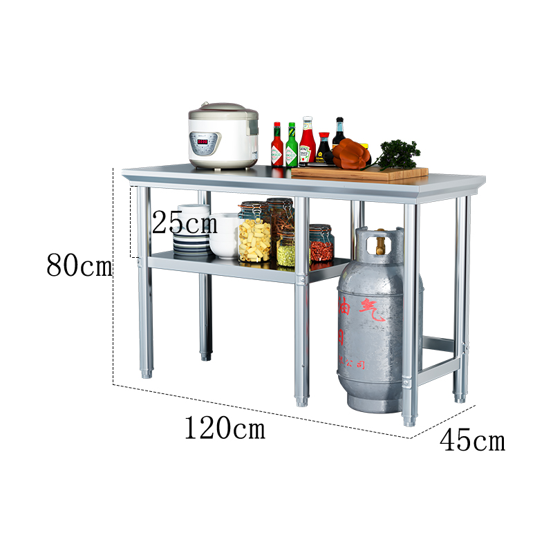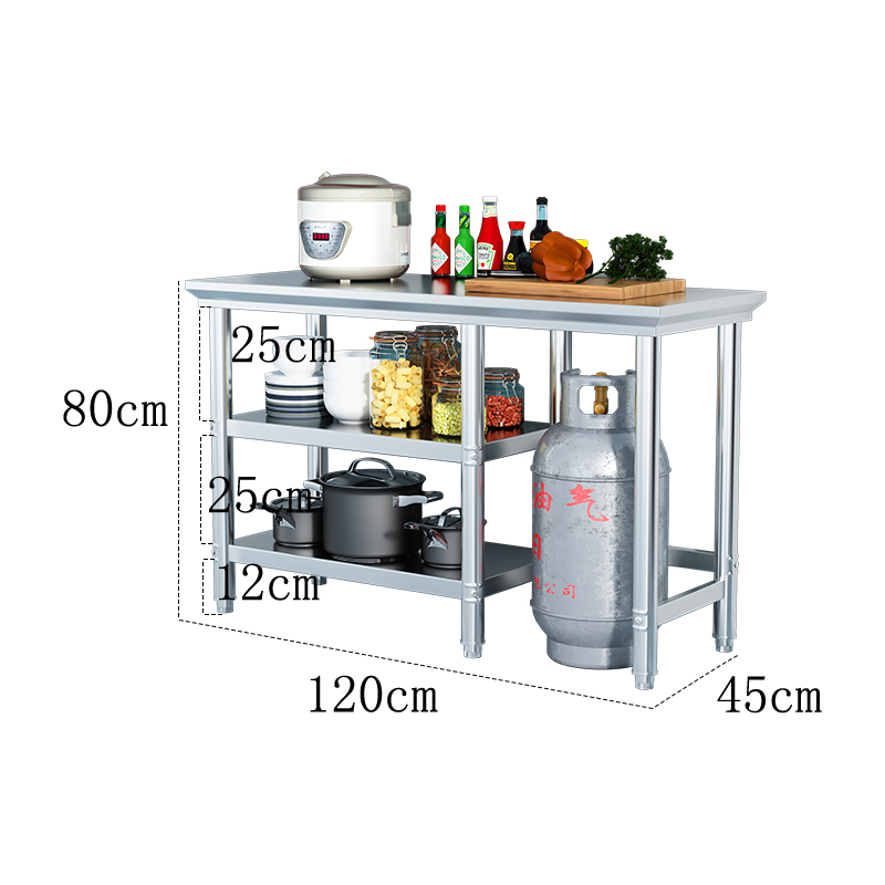 Kitchen workbench stainless steel table thickened double-layer three-layer operation countertop can put gas tank kitchen table storage rack