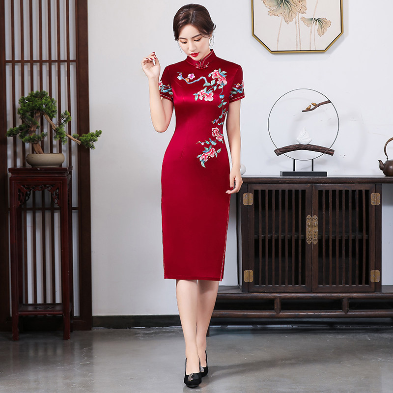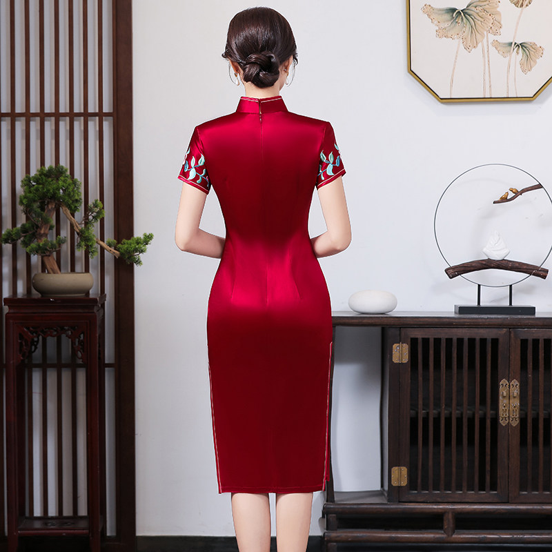 Mother red qipao Spring Summer 2022 new wedding banquet Wedding Mother Mother-in-law Noble Wedding Temperament Acetate Section Embroidered Woman