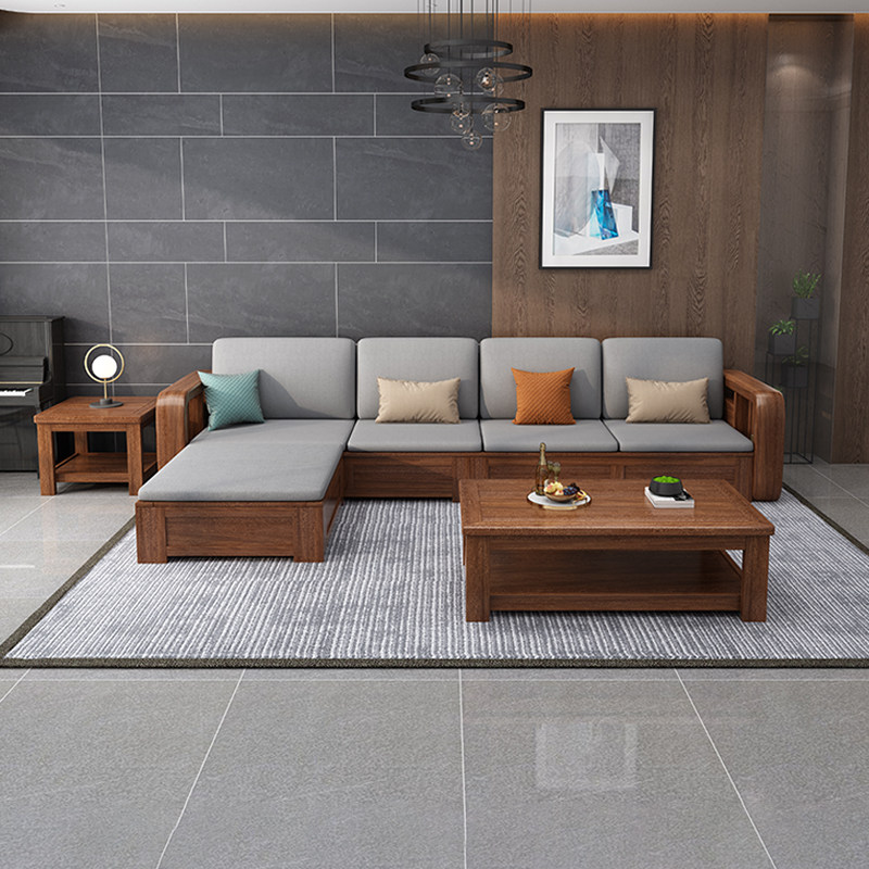 Walnuts 4 people in high box sofa tea table square tea table pedalling walnut wood 3 people in high box sofa tea table square tea table down-to-earth TV cabinet walnuts 4 people with sofa tea table