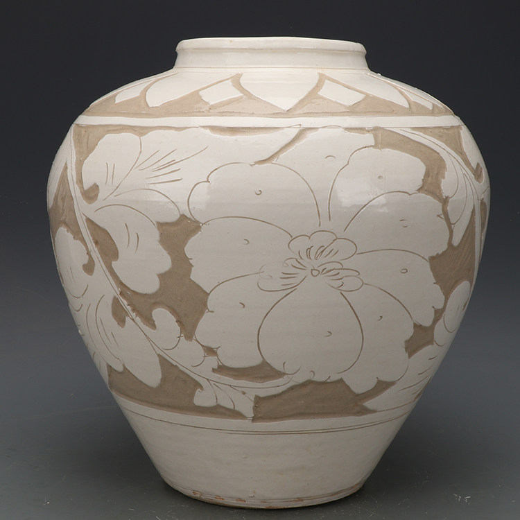 Song Dynasty Cizhou kiln painting flower white glaze jar jar jar antique old porcelain flower arrangement retro folk ornament ornaments