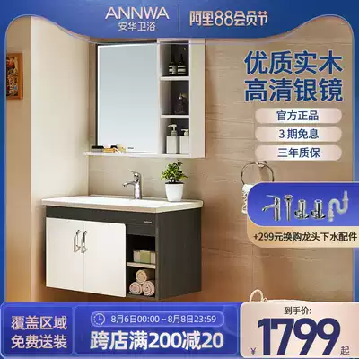 Anhua bathroom powder room Bathroom mirror cabinet combination cabinet solid wood wall-mounted Nordic simple washstand N3D65G15
