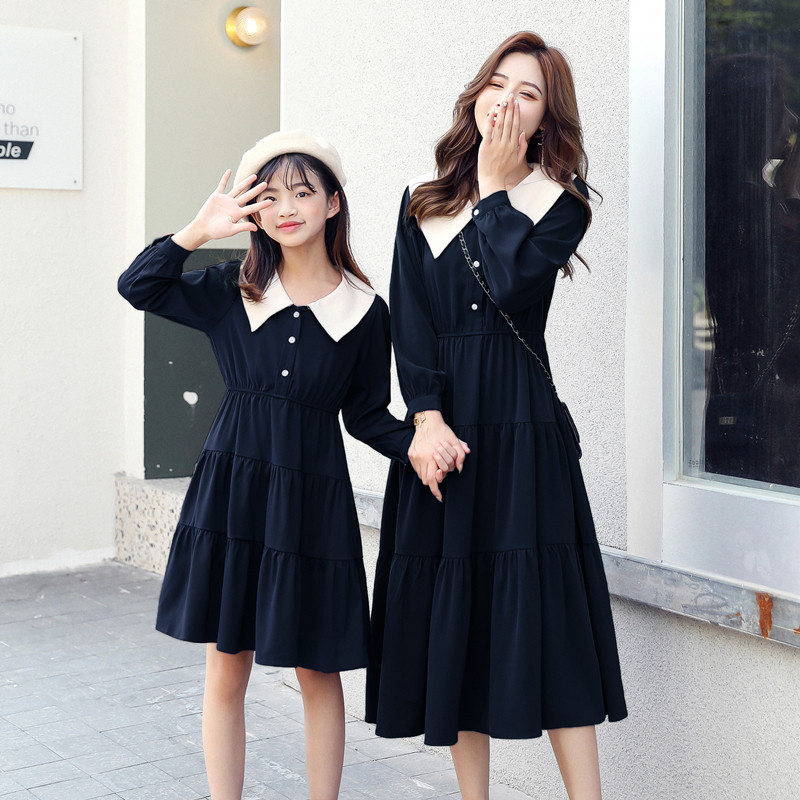 Mother and daughter in a dress.