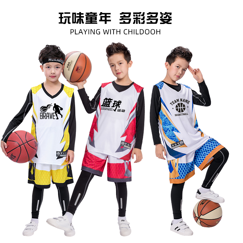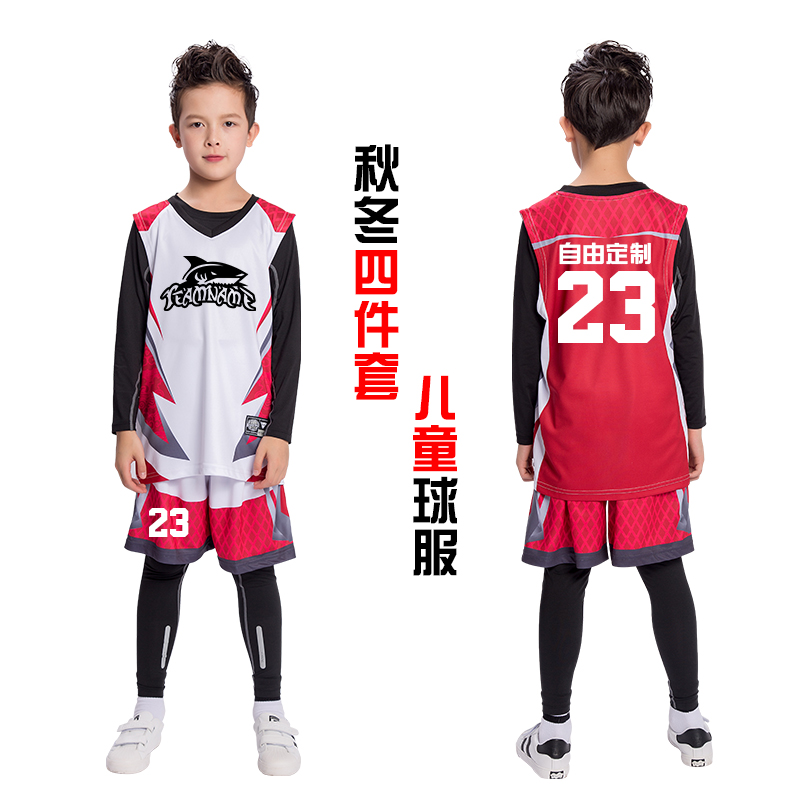 Children's Basketball Suits Suit Boy Long Sleeve Tight Jersey Match Training Suit Customised Elementary School Children Sports Team Uniform