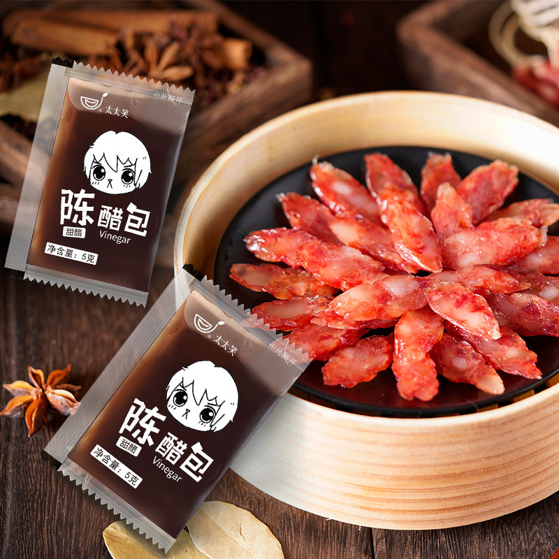 Wife laughs outside with small Vinegar Bag 800 Pack whole box Commercial Chen Vinegar Water dumplings Spicy Powder Snail Powder Vinegar Seasonings