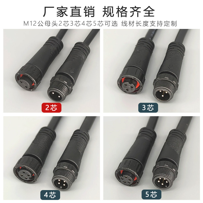 M12 2 cores 0.5 square male and female M12 2 cores 0.75 square male and female M12 2 cores 10 square male and female M12 3 cores 0.5 square