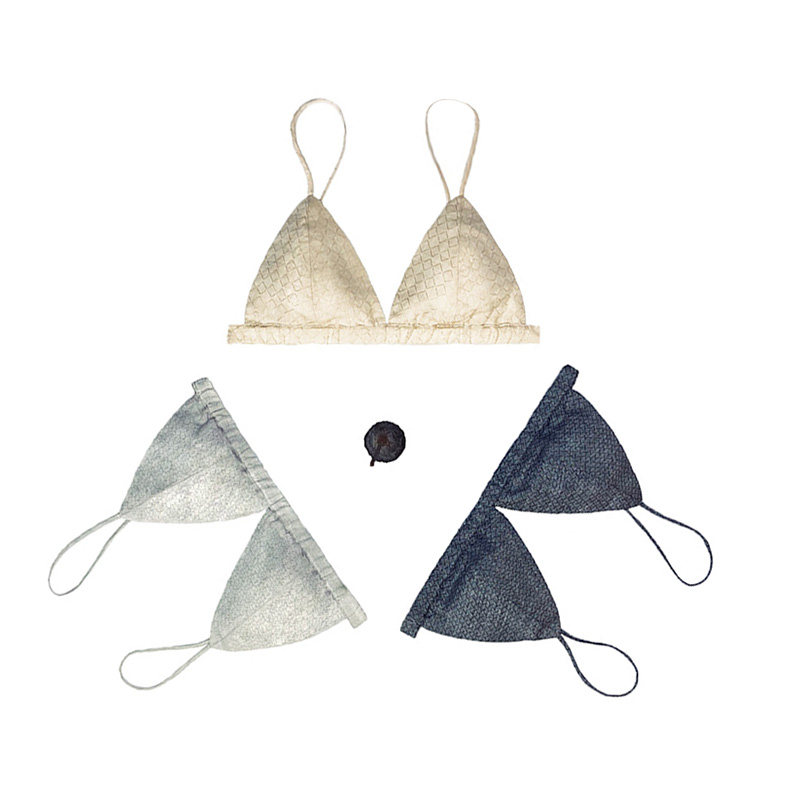 Chen Xiaoman pure linen bra jacquard no rim summer ultra-thin triangle cup bra small chest beauty back French underwear