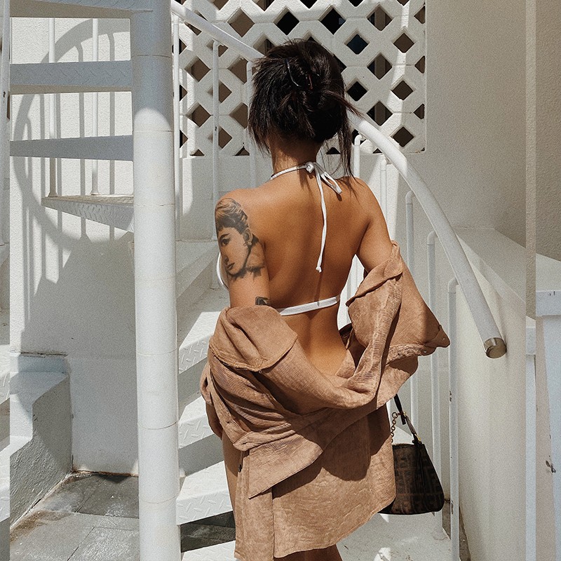 French retro holiday outside the beach sun proof clothes tea marine fabric wrinkled fabric sunscreen shirt