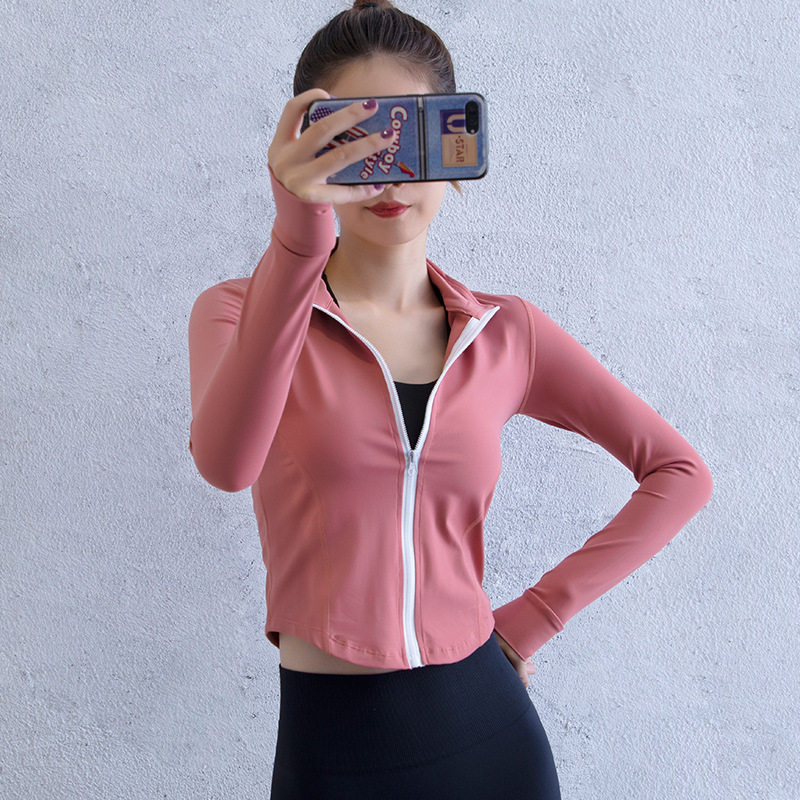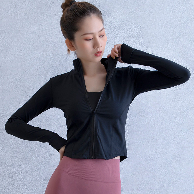Short umbilical thin fitness clothing Running training leisure sports jacket Stand-up collar zipper quick-drying long-sleeved yoga suit
