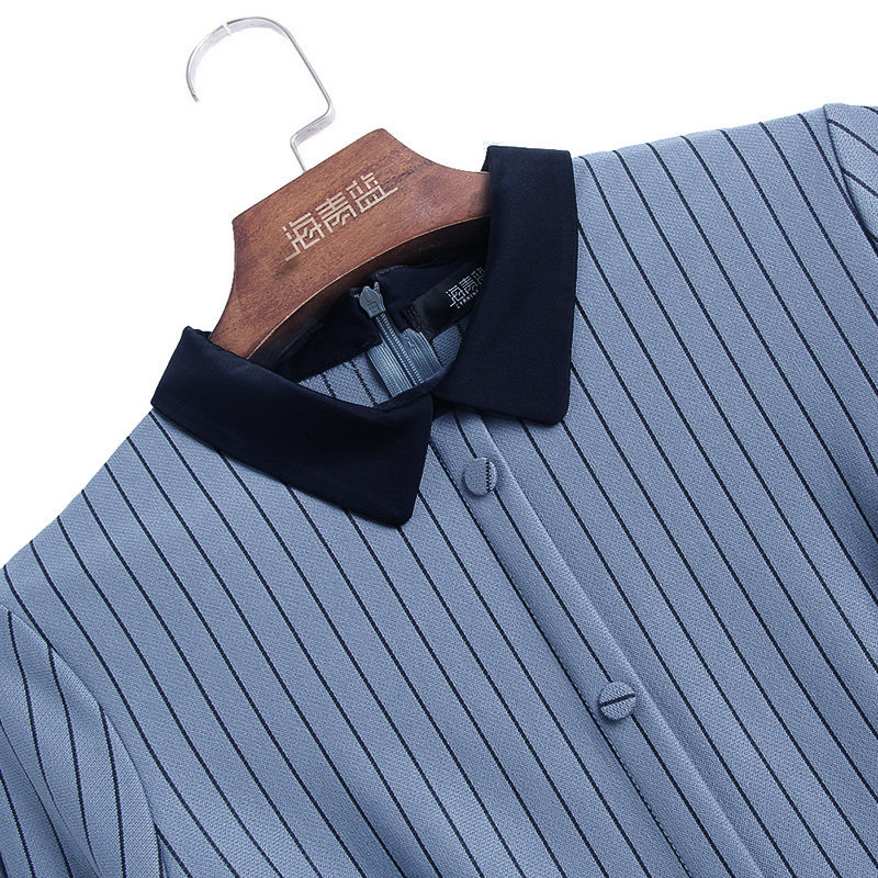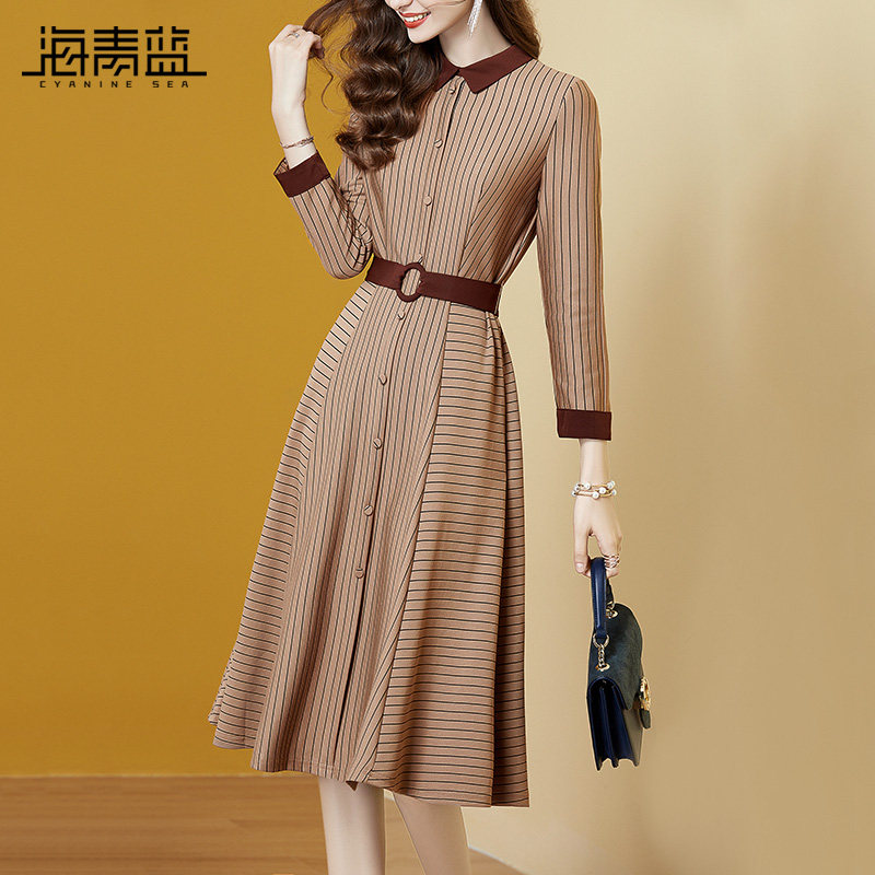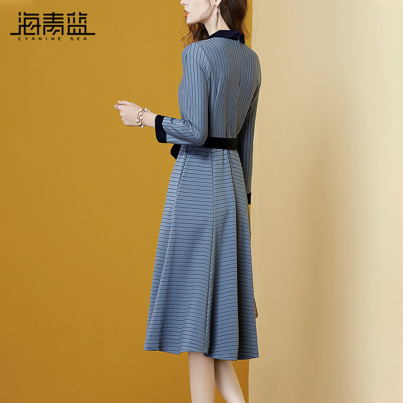 Haiqing Blue Name Yuanfeng Temperament Skirt Autumn Clothing 2021 New Women's Dress Collection Waist Striped a Character Dress 52206