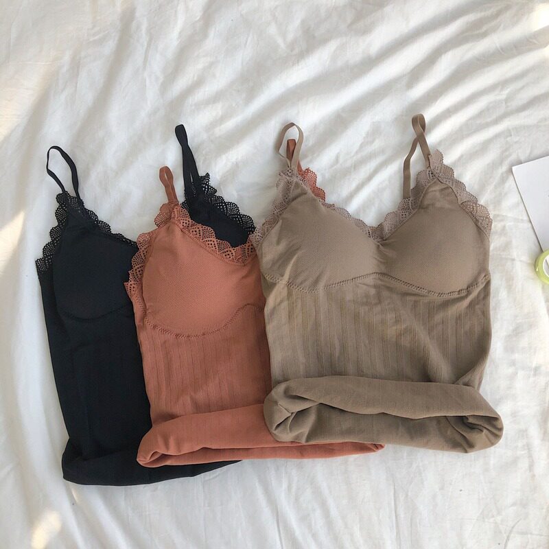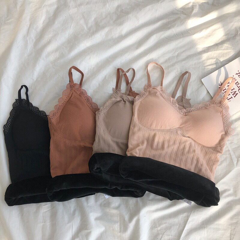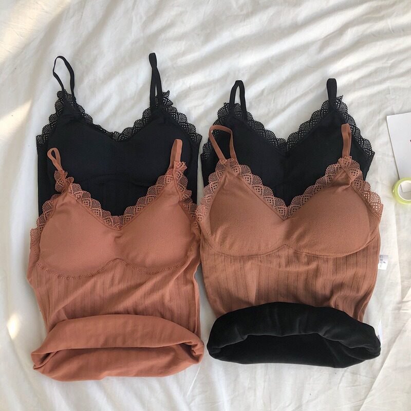 Spring Summer Season Plus Suede Warm With Chest Cushion Lace Vest Display Slim Undershirt Underwear Women 2022 New Korean Prints