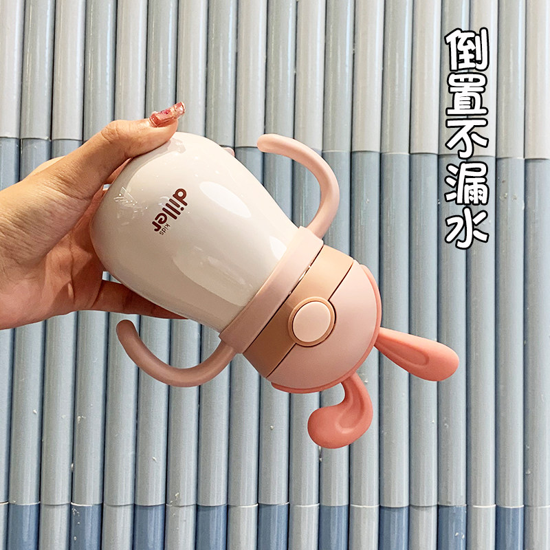 Baby bottle water cup dual-use baby learning drink thermos cup with handle 6 months stainless steel straw cup Household