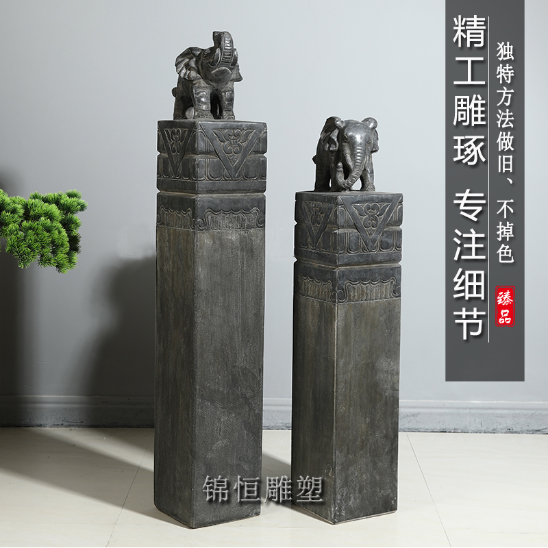 Stone carving tie horse pile small elephant bluestone antique tie horse column courtyard hotel decoration decoration elephant stone pillar tie horse stone