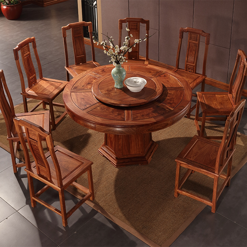 Redwood furniture hedgehoppy tablesSurface new Chinese restaurantsCombined solid wood log round table dining chairs