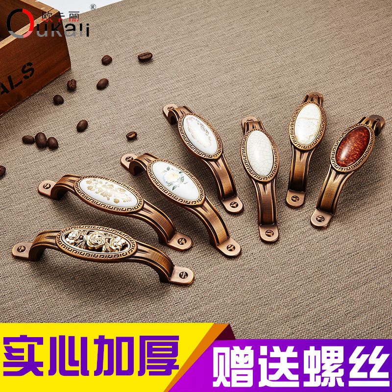 Light extravagant ceramic handle European style zinc alloy American retro wardrobe integral cupboard drawers Cabinet cabinets Single-hole small handle