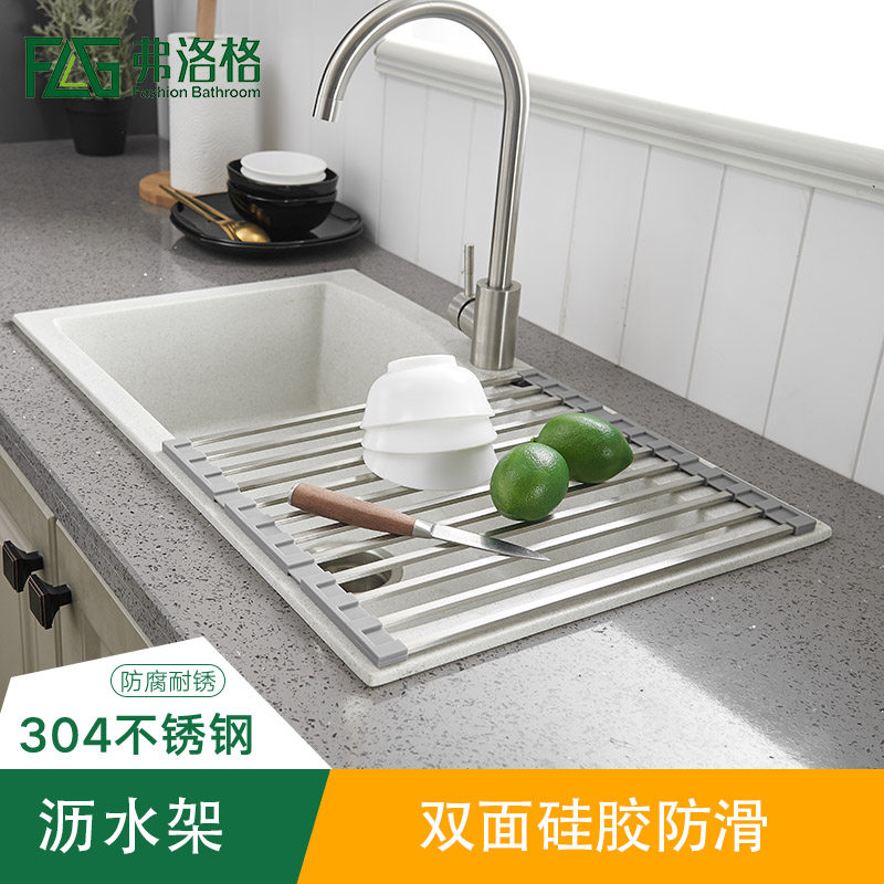 Foldable drain rack Stainless steel sink Kitchen filter drain rack Washing basin drain basket Silicone drain bowl