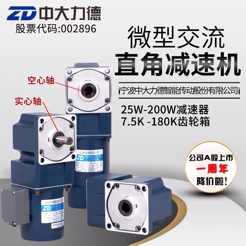 ZD medium and large motor right angle speed regulation induction AC gear reduction 25W-200W arc cone 90° hollow solid shaft