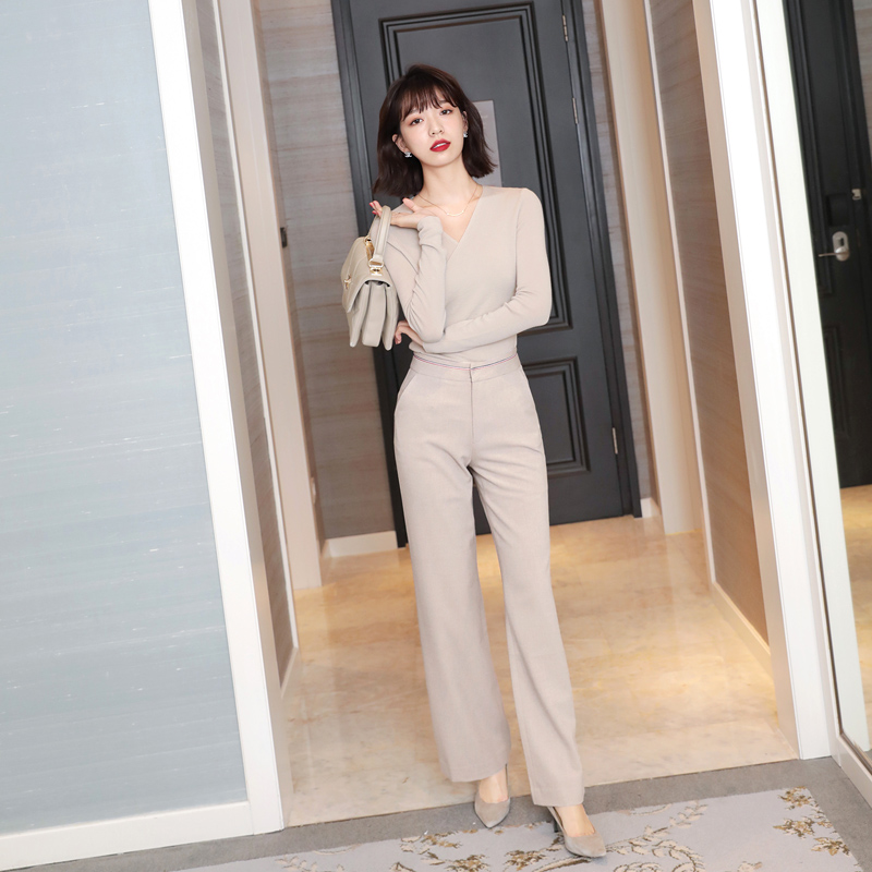 JOLIMENT commuter pendant wide-leg casual pants women's 2020 autumn and winter new style penny-end brushed fabric straight-leg pants