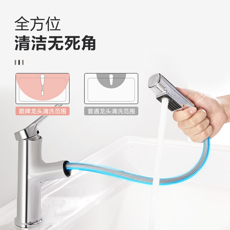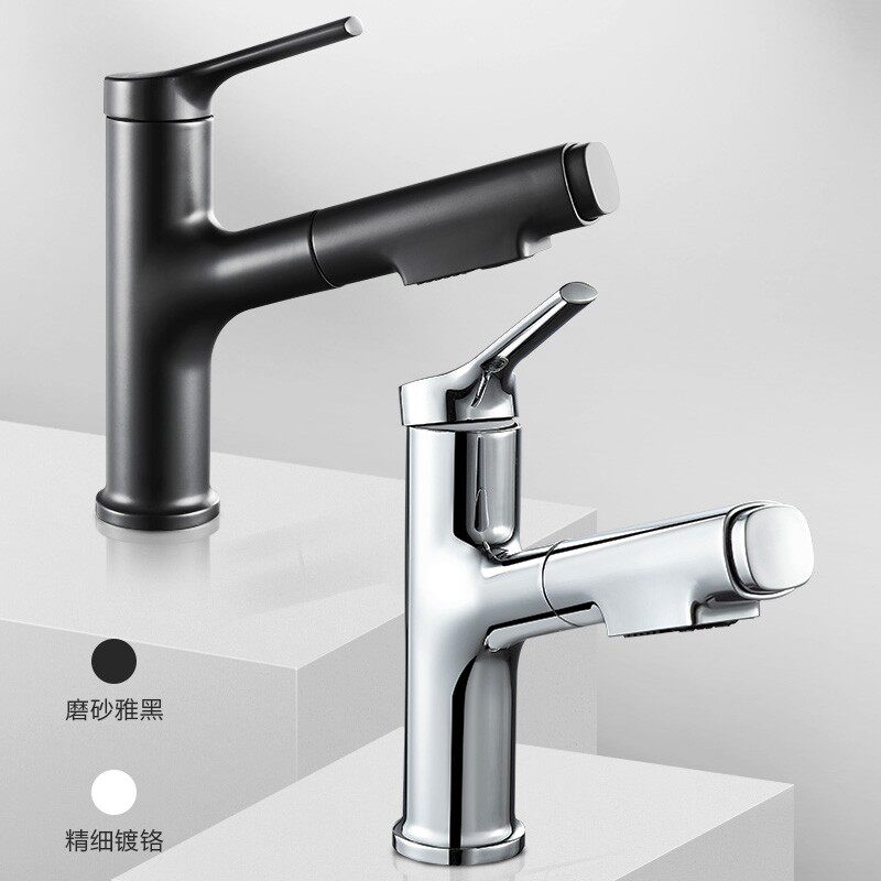 A fine copper thickened surface basin tap B in silver color double mode water extraction pull tap C in black double mode water extraction pull tap