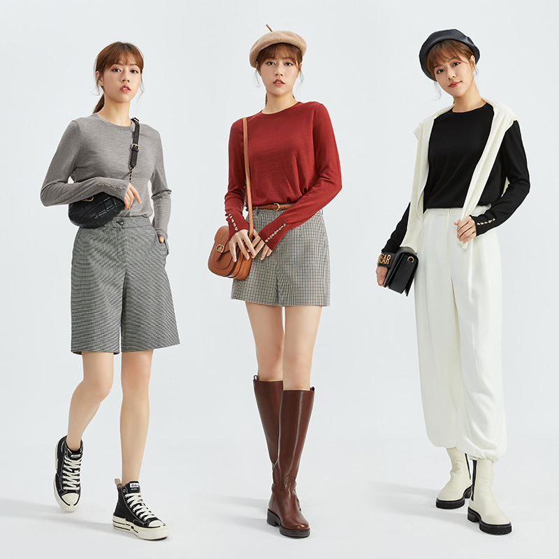 Brother 2021 new spring and summer round neck metal buckle wool sweater base sweater sweater inside the female A300780
