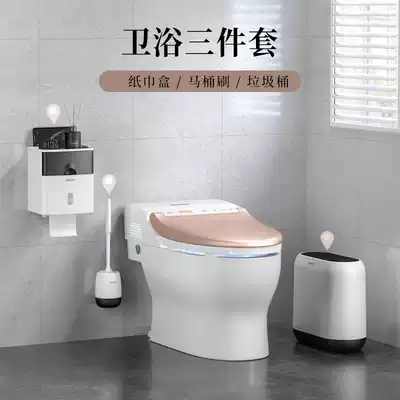 (Tissue box | Toilet brush | Trash can) (gray three-piece set) (tissue box toilet brush trash can) (black three-piece set)