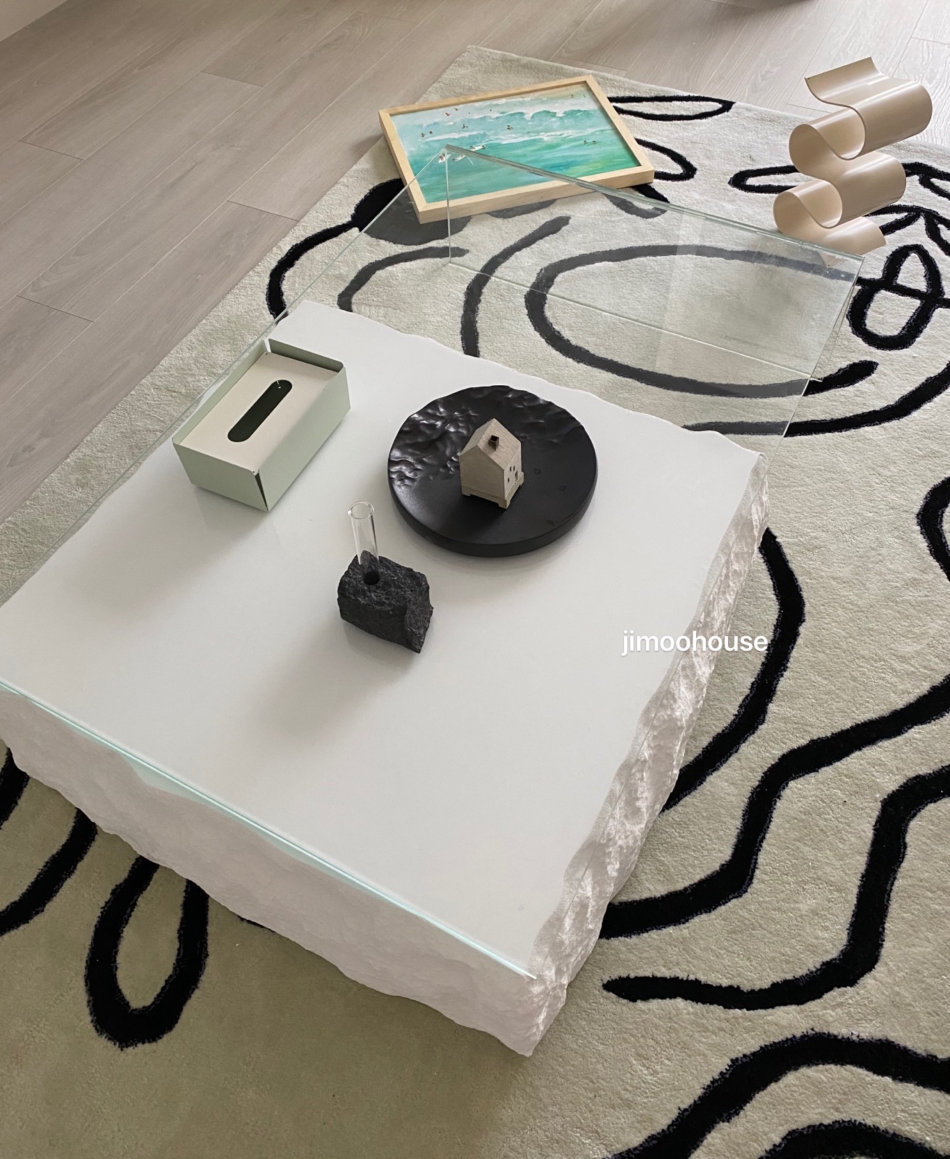 The wood room is a minimalist limestone ultra-white glass low coffee table, fashionable Net red high atmosphere, photo props