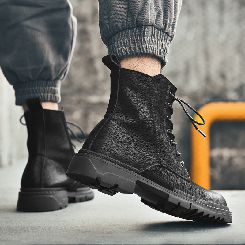 ins Martin boots male high cylinder tooling boot genuine leather Inlenty wind medium cylinder locomotive leather boots 2022 new male boots