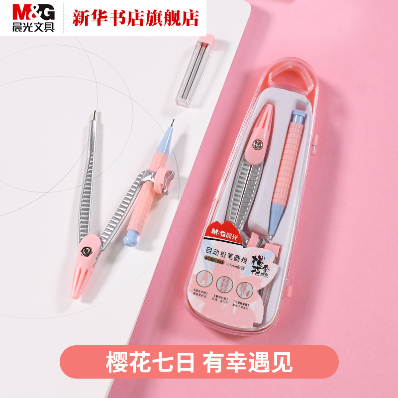 (Xinhua Bookstore flagship store official website) Chenguang stationery cherry blossom season limited pen compass set exam tools compass students with cute cute ruler set drawing tools