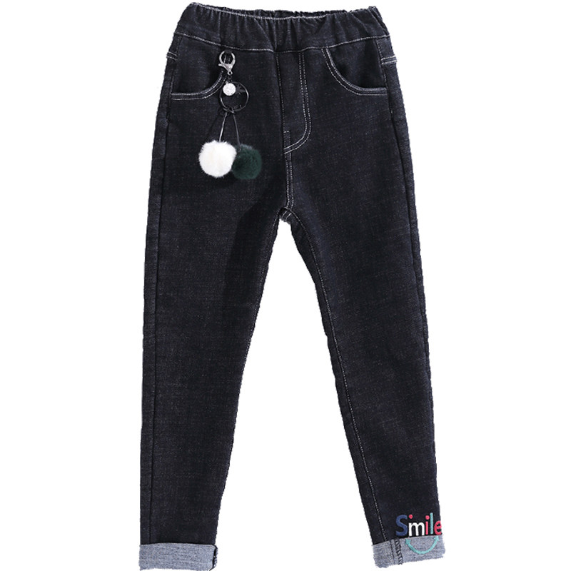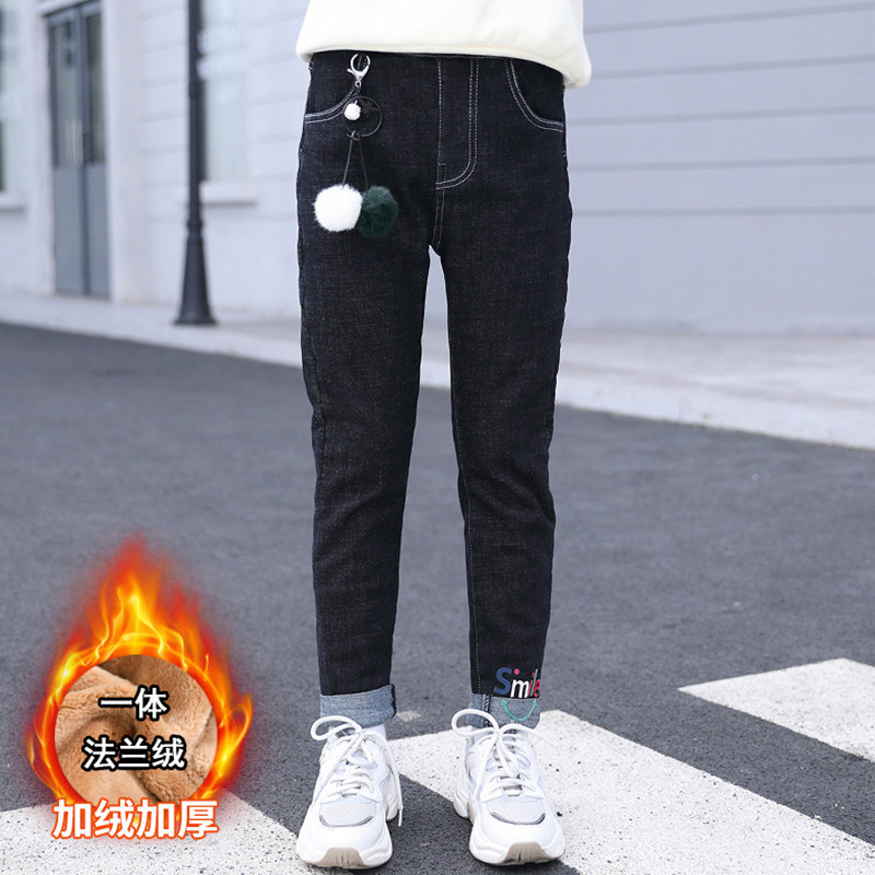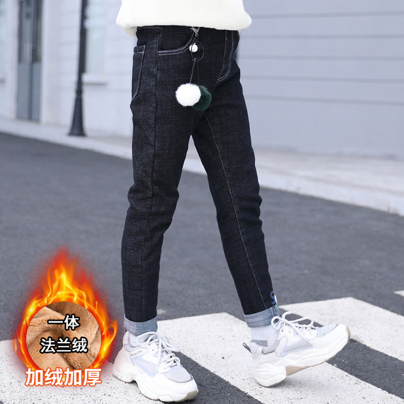 Girl Denim Plus Suede Pants Autumn Winter Style Large Child Loose Integrated Suede Pants Winter Children Casual Warm Pants