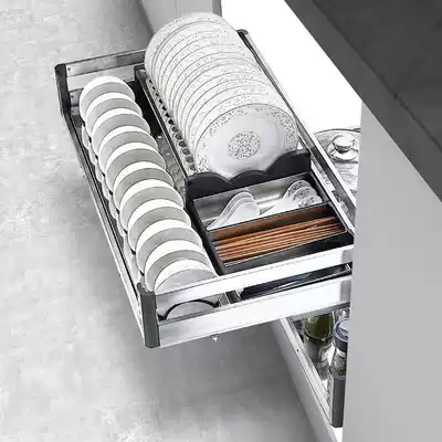 Han Shira basket kitchen whole cabinet double drawer type 304 stainless steel plate double seasoning? With car dish rack wan lan