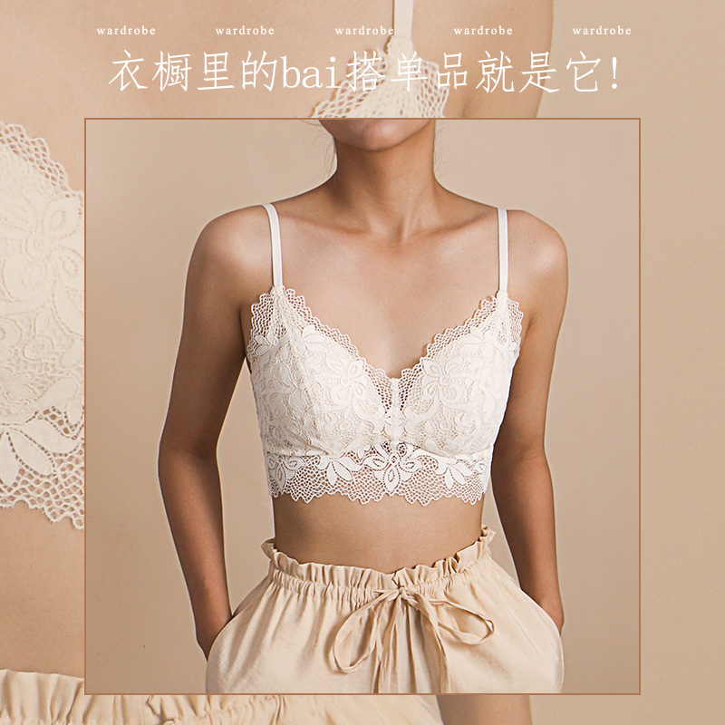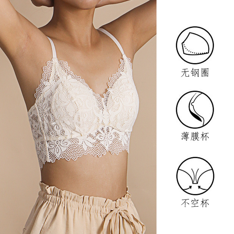 Thin no steel ring lace underwear female sleep small chest gathered summer beauty vest all-in-one bra 20803