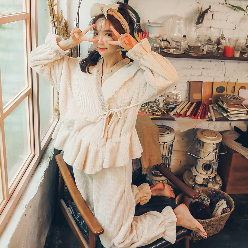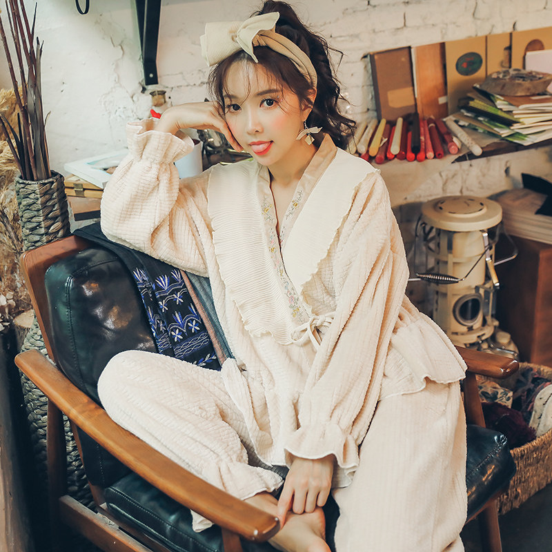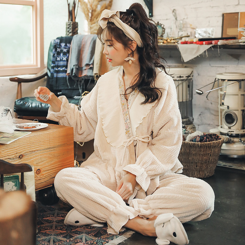 Pajamas fall and winter female coral velvet flannel thickness and velvet home suit can be worn outside the new winter in 2022