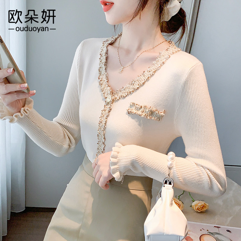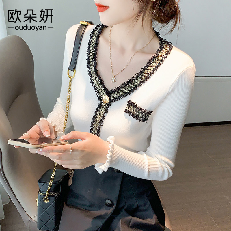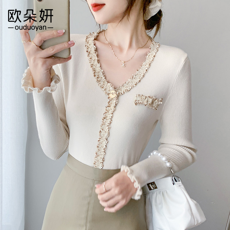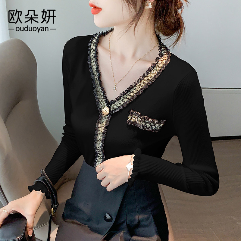 Small Vulcan V - collar knitting sweater in spring 2023 new blouse blouse in the gas of a long sleeve coat