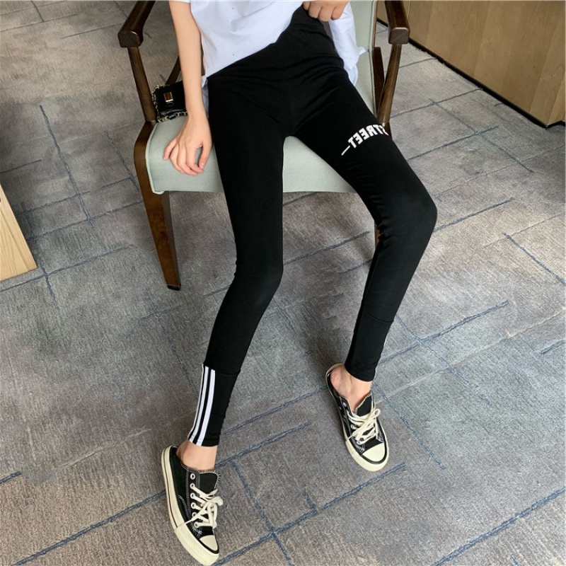 Japanese leggings women's outerwear net red letters thin section high waist slimming three-bar slim-fit sports small feet nine-point pants
