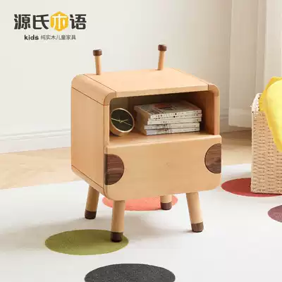 Genji Muyu solid wood bed cabinet Simple modern small apartment bed side storage cabinet Mini small children's storage cabinet