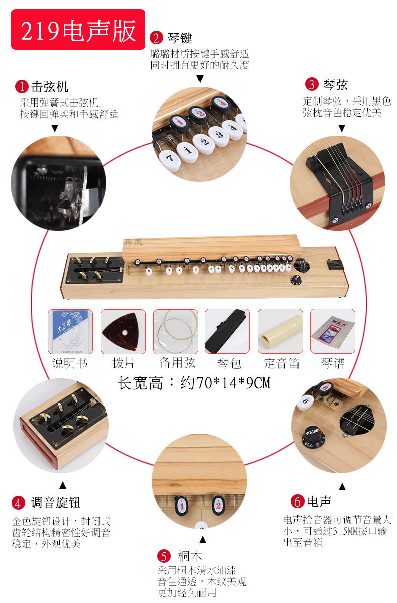 229 solid wood Dazheng qin, Phoenix qin, Dazheng qin that can be plugged into audio, national musical instrument, Zhongshan qin